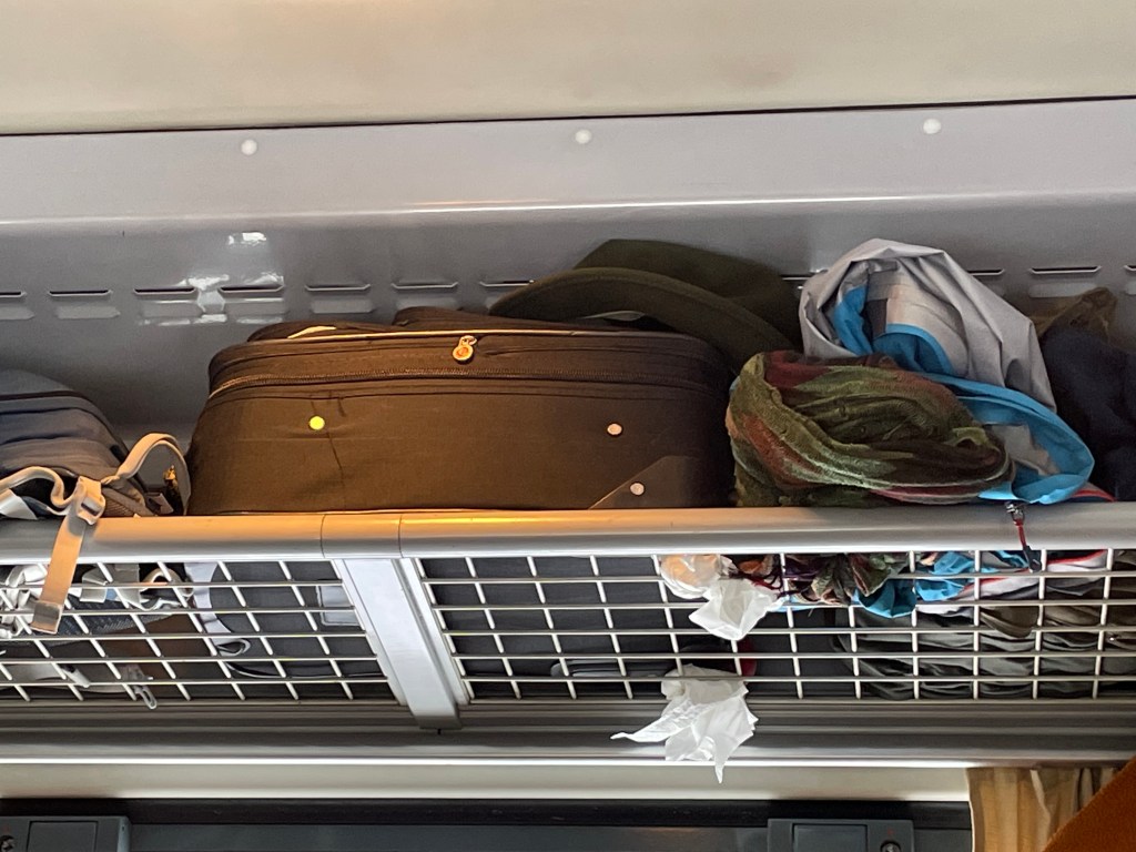 The seating design is very definitely ‘from another Age’ (but more comfortable than many more recent designs). This is first class – and the compartment provides a self-serve coffee & snacks service (but only after entering Denmark).
