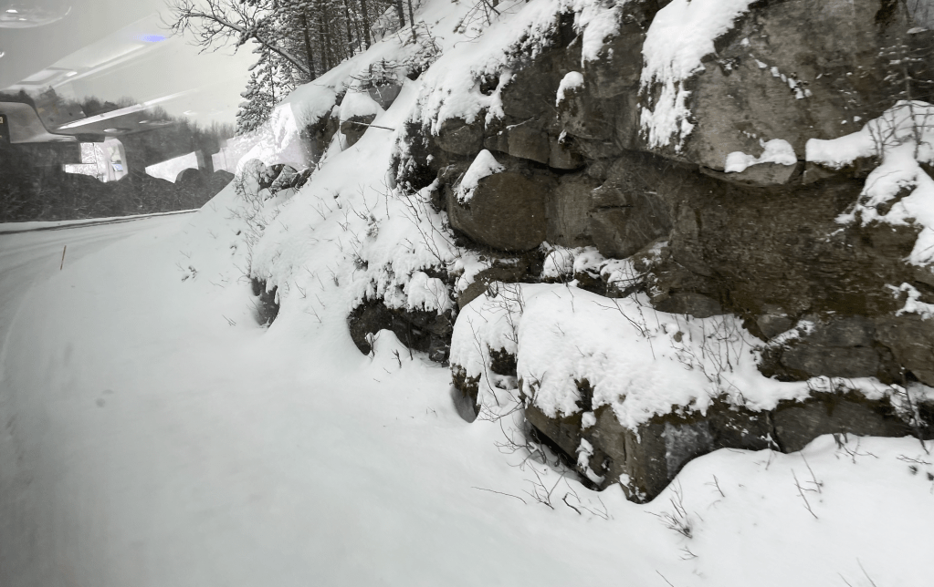 The local authority has a very prompt response to snow. We were delayed at a crossing whilst the snow clearing ‘convoy’ of 8 large vehicles passed majestically.