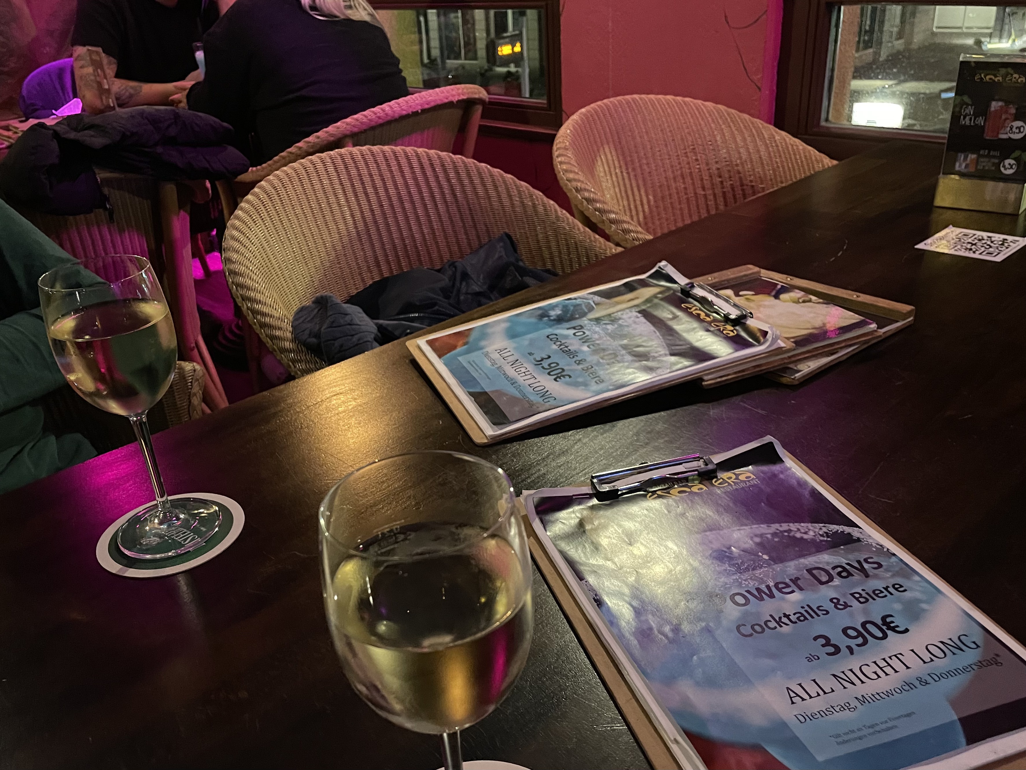 Wednesday rolled seamlessly into Thursday as we wandered the wet, dark streets of Wurzburg… our aim: to find somewhere to sit in comfort for several hours. A member of staff at the station helped with information… and showed us where and how to store our luggage (an impossibility at a regional station in UK).