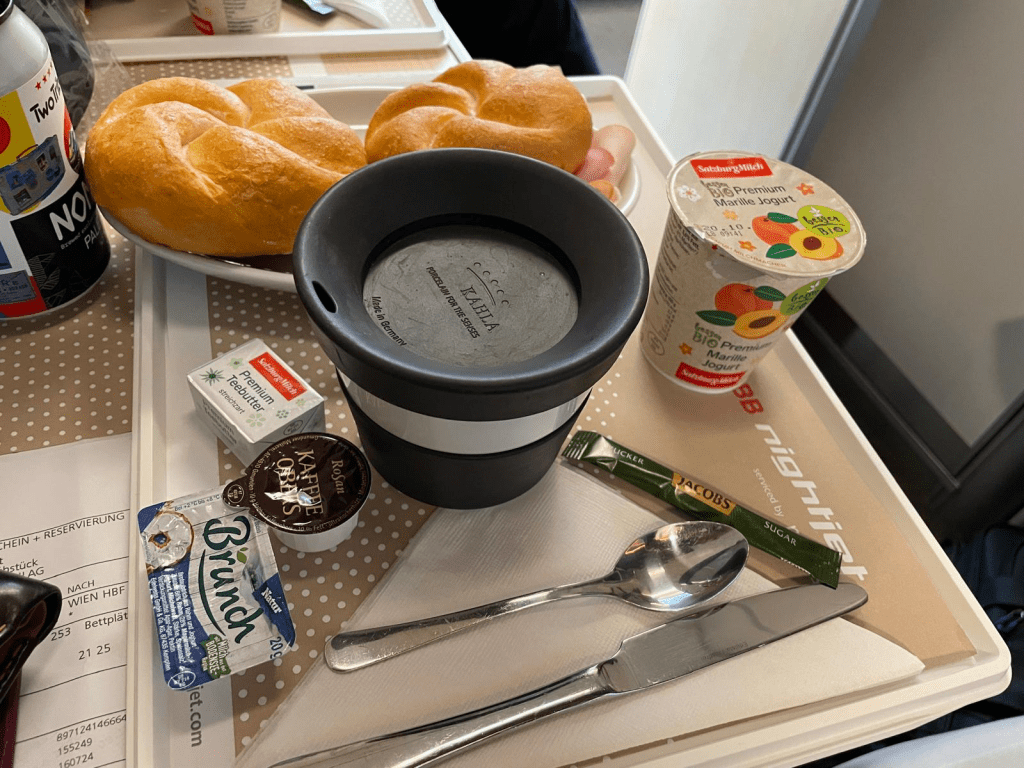 We leave Würzburg…. But with unexpected benefit … a cabin and arrival in Austria with breakfast in bed