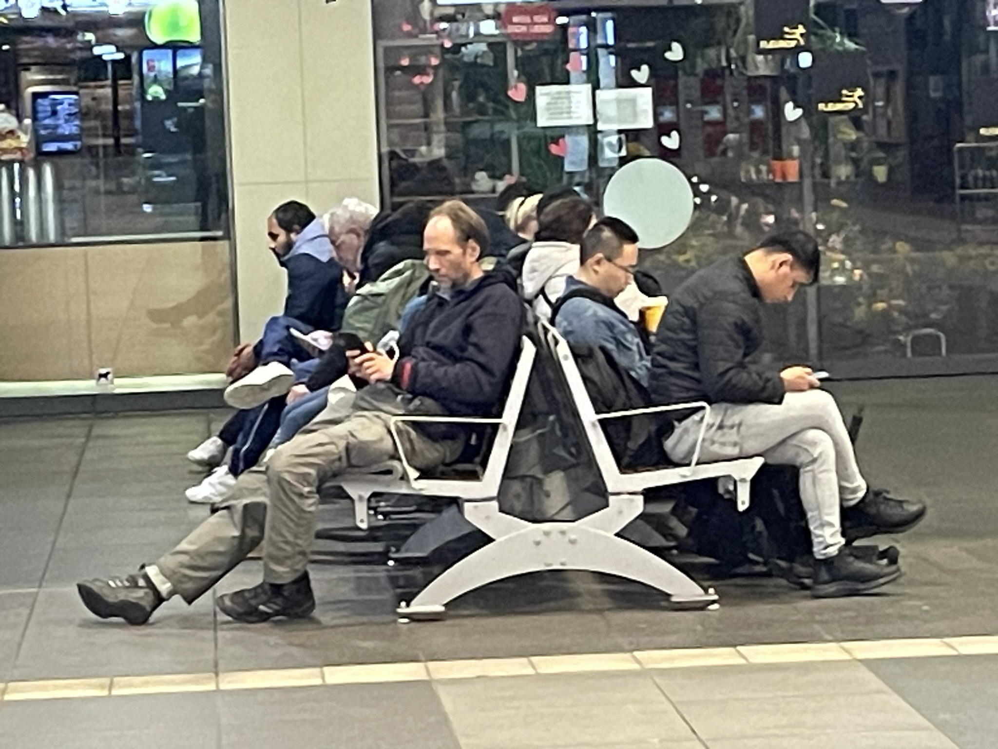 On both sides of the concourse individuals were shutting themselves down, retreating, being as personally ‘enclosed’ as possible.