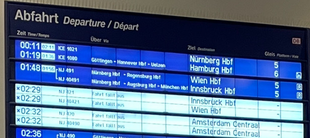Before reaching Frankfurt we decided that we should attempt to continue to reach Wien by whatever trains might be available…. but checking first at the information desk.