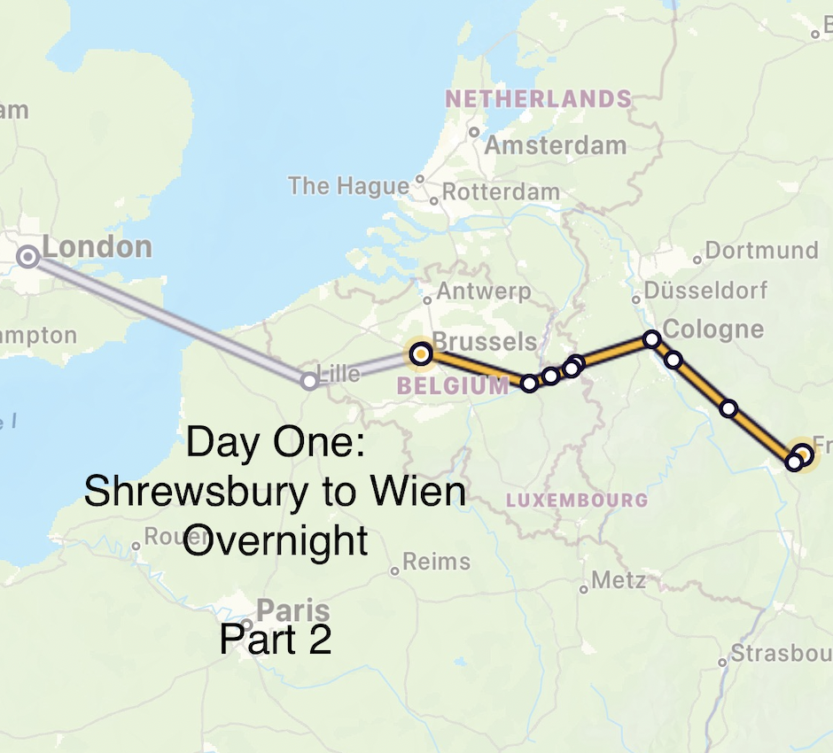 We were late into Brussels but managed a connection to Cologne by 2 minutes (they held the train for Eurostar passengers. Now we have to try and find a train that will take us to Vienna….. could be a very long night!
