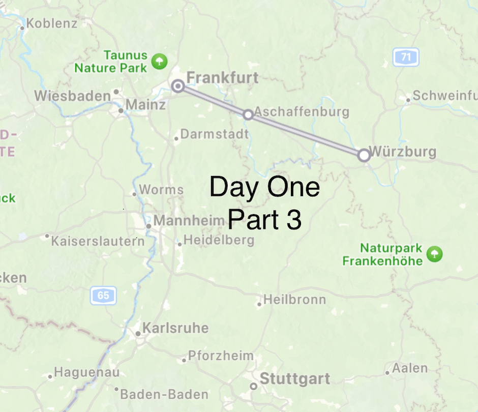 ….. and by staying on the train to Frankfurt, adding a diversion both to the route & to the experiences of our first day’s journey.