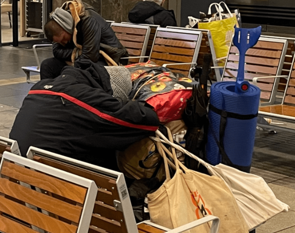 Then returned to the station and joined the hopeful Night Riders…. And ‘others’ (most were quietly intoxicated)…. Then onto the platform waiting for a train, (which followed others only designed for freight and hoboes) that arrived around 02.15….