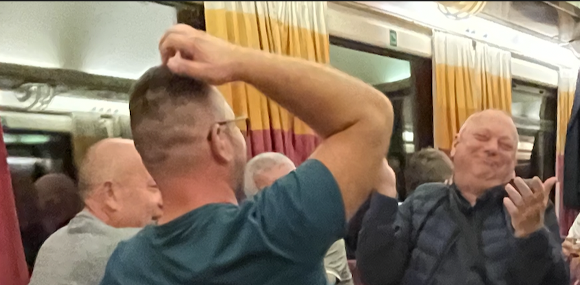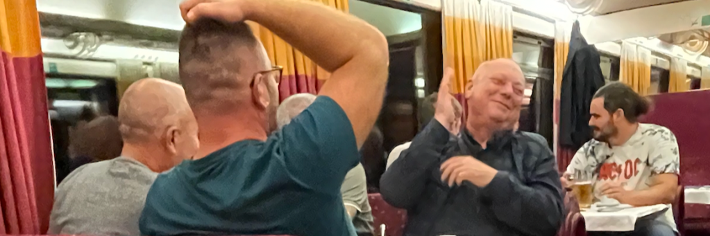 This night journey (Friday) ……It’s very very different from the previous journey……as we wait, in the dark, near the Hungarian/Romanian border for some complex railway required movement of coaches….. but this journey, after a wonderful time in Budapest, is everything we desired from our journey to Romania….. for people such as us, in our neat, organised & generally predictable lives … a wonderful experience with people full of laughter and basic good humour….. complemented with excellent Hungarian wine.