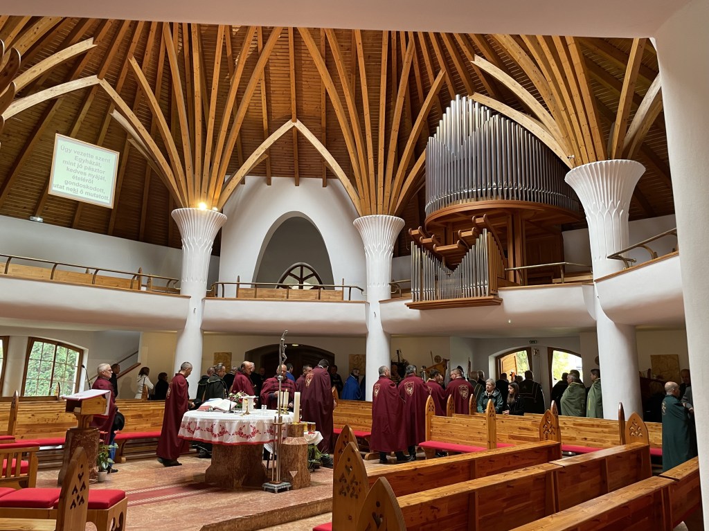 The church was built in 2003, based on the plans of Makovecz Imre, and consecrated on 18 October 2003, in honour of the Assumption and the Hungarian saints, by Archbishop Jakubinyi György and Bishop Tamás József. The parish priest Darvas-Kozma József came up with the idea of the Millennium Church.