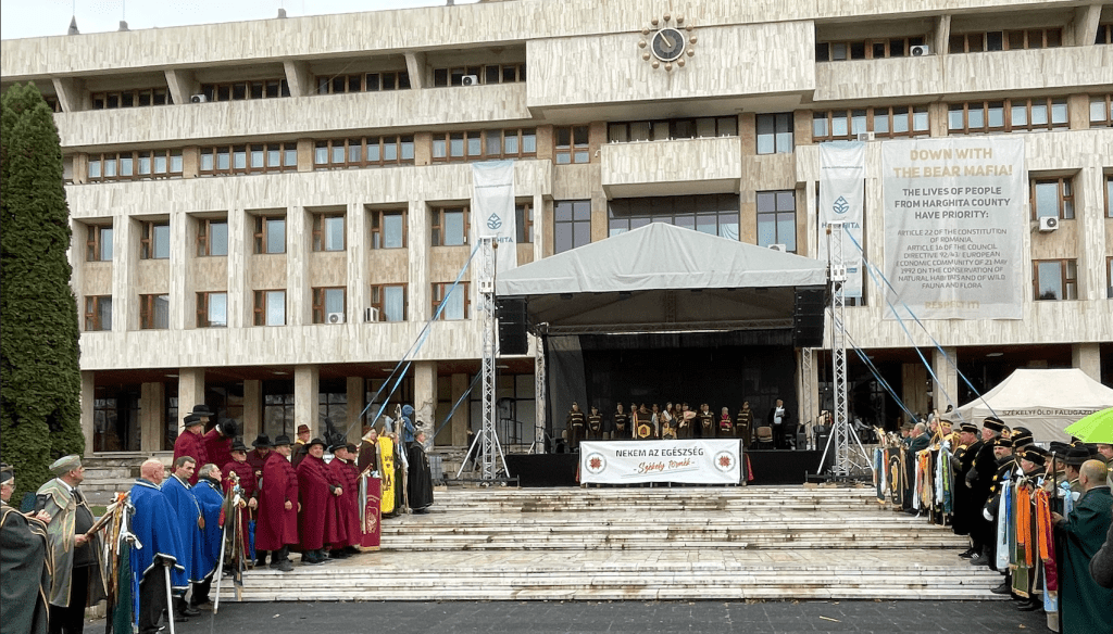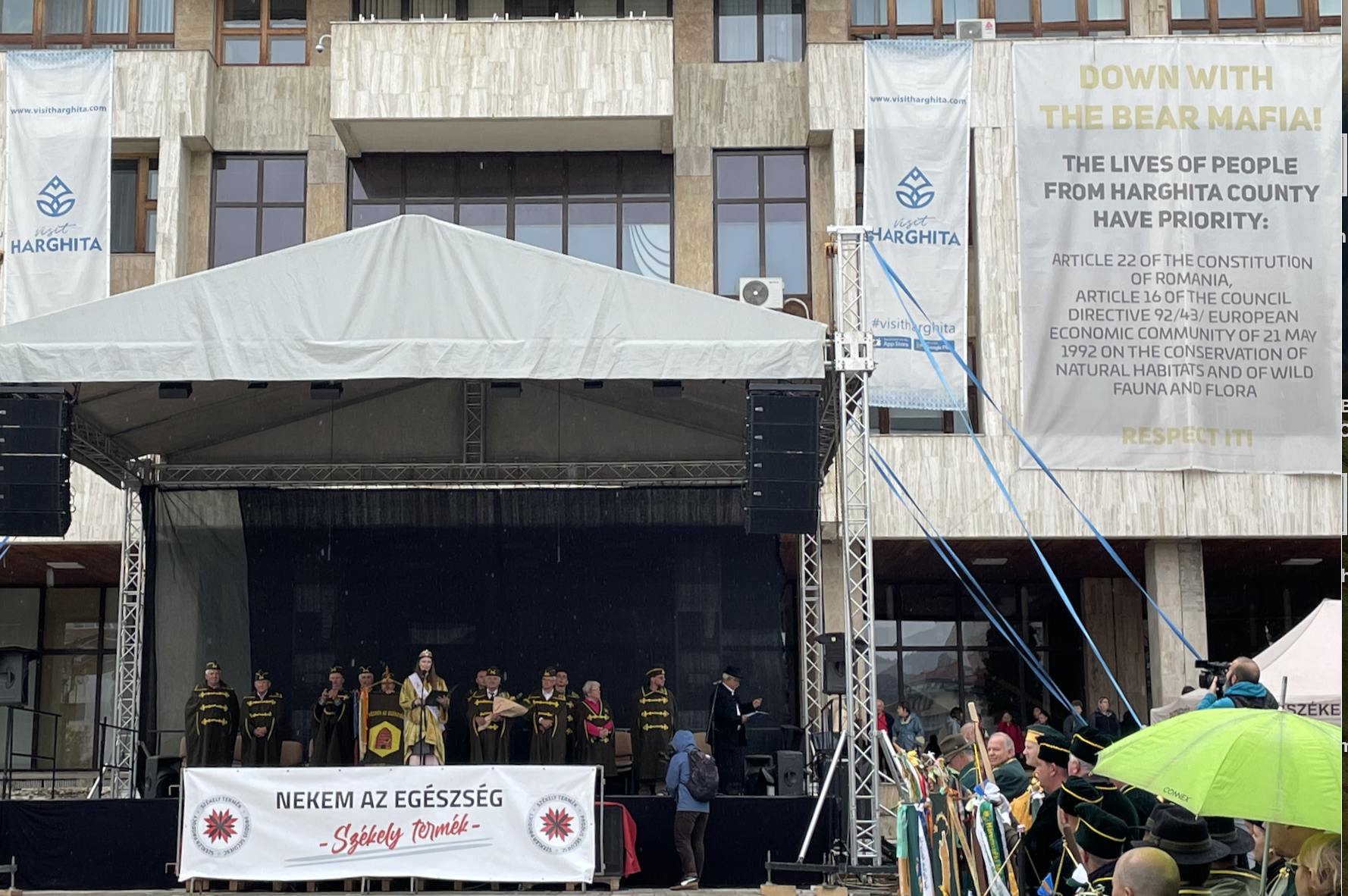 We are in Székelyföld : Székely Land. They are a group with Hungarian language but a proudly distinctive group – some suggest they were amongst the earliest of the Huns to live in what is now Transylvania or a semi-independent group created by social change
