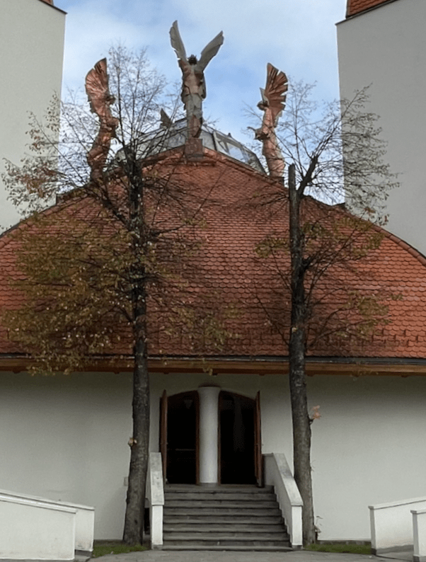 Overseen by angels, sheltered by trees – a theme evident from the entrance