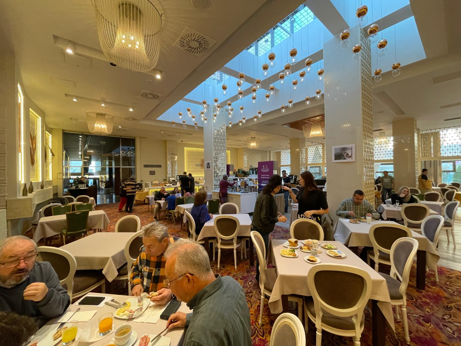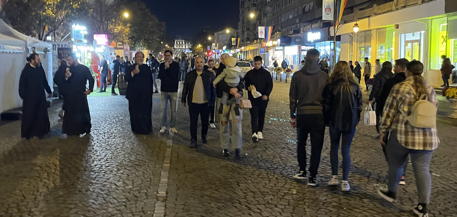 Breakfast in Unirea. As well as providing one of the best hotel breakfasts, it is always a fantastic place for viewing and reflecting on the state of local society. This weekend, due to the important and huge festival of Saint Parascheva, the character of the place is very particularly orthodox influenced Romanian. However, it is now much more mixed than in the past. I also notice that some people from last night’s dining room who had an Old Style appearance, are much more informal this morning. More older style behaviour survives in way older people behave without much sense of spatial awareness when eg targeting the coffee machine…. And a few international visitors appear intolerant of what they do not comprehend. Wonderful start to the day!