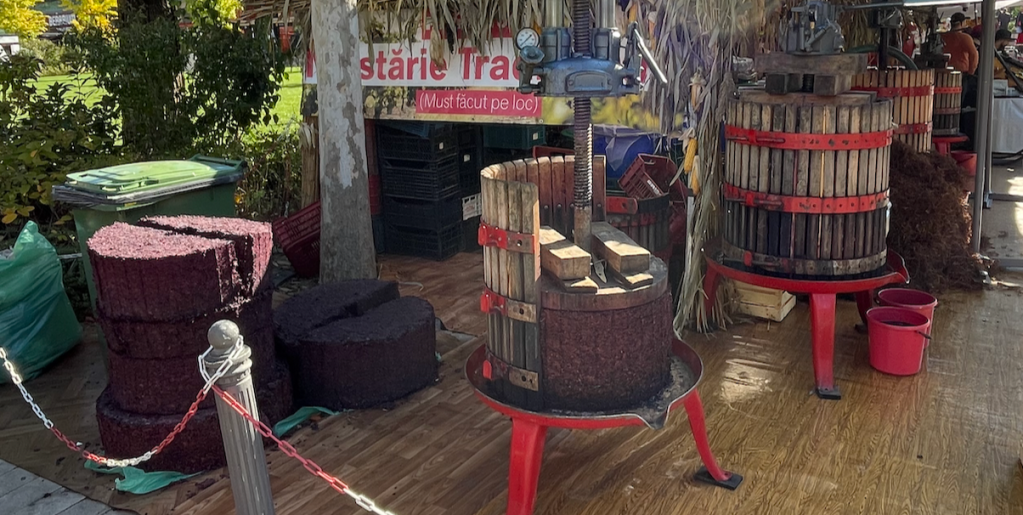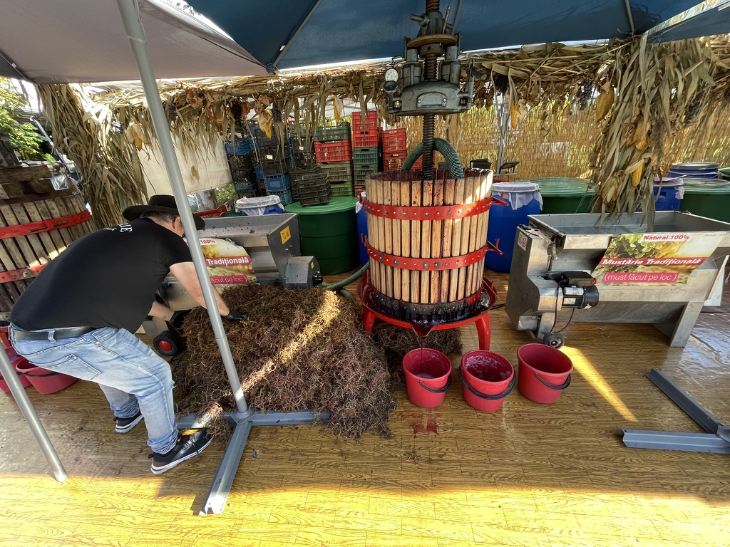The autumn is a time for ‘Must’, a popular drink from the liquid of pressed grapes – as shown here – & is not fermented (but needs to be kept cool).