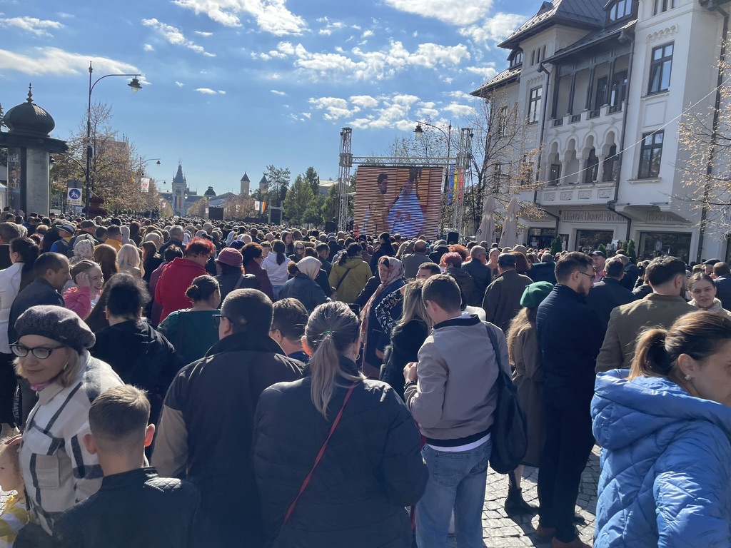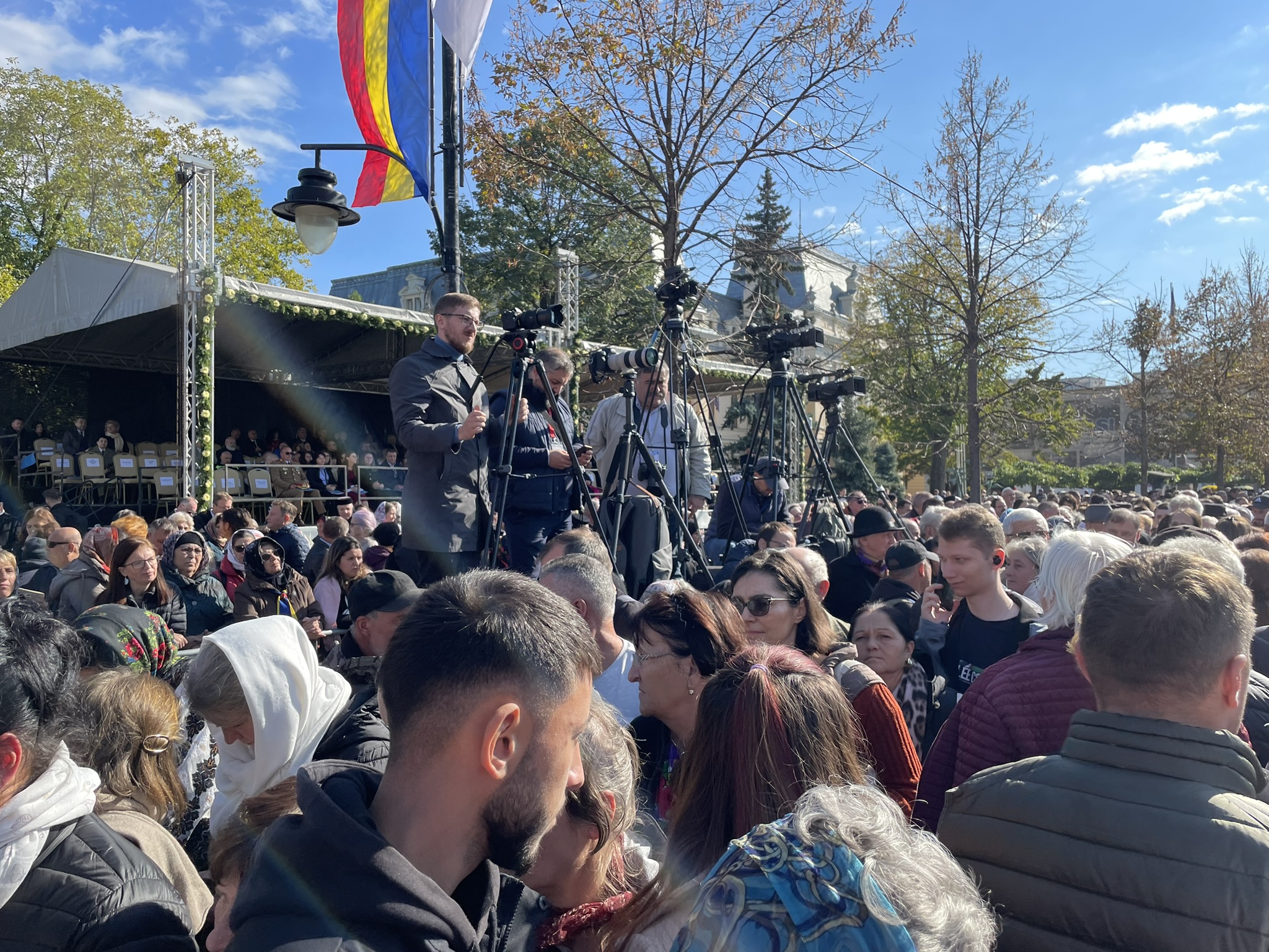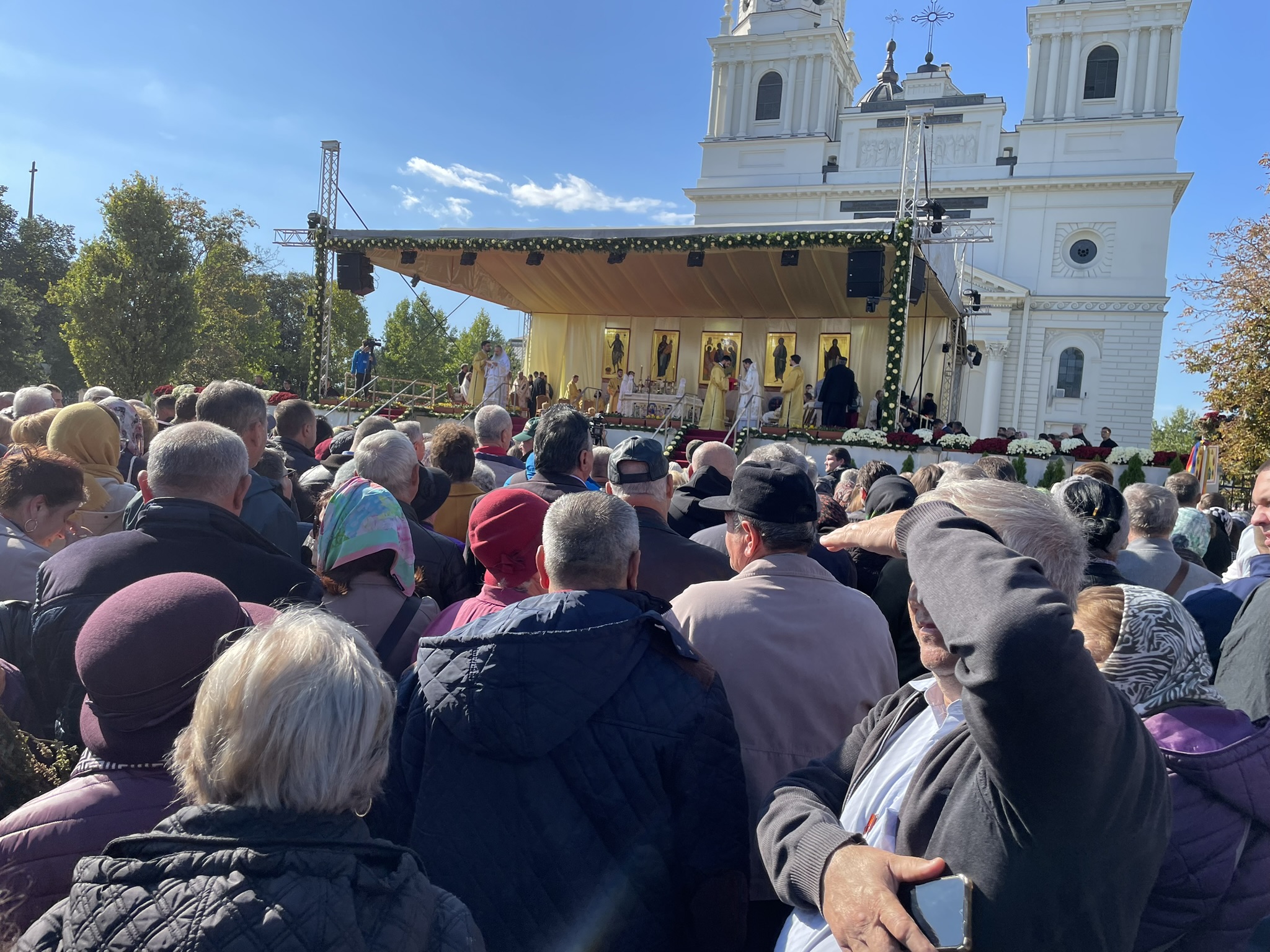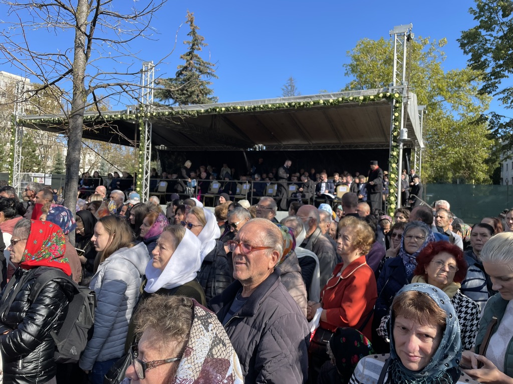 The celebratory liturgy was being held on a special raised platform on one side of The Stefan cel Mare Boulevard. Opposite was another platform with seating for invited guests. The huge congregation positioned themselves between the two & spreading along the boulevard.