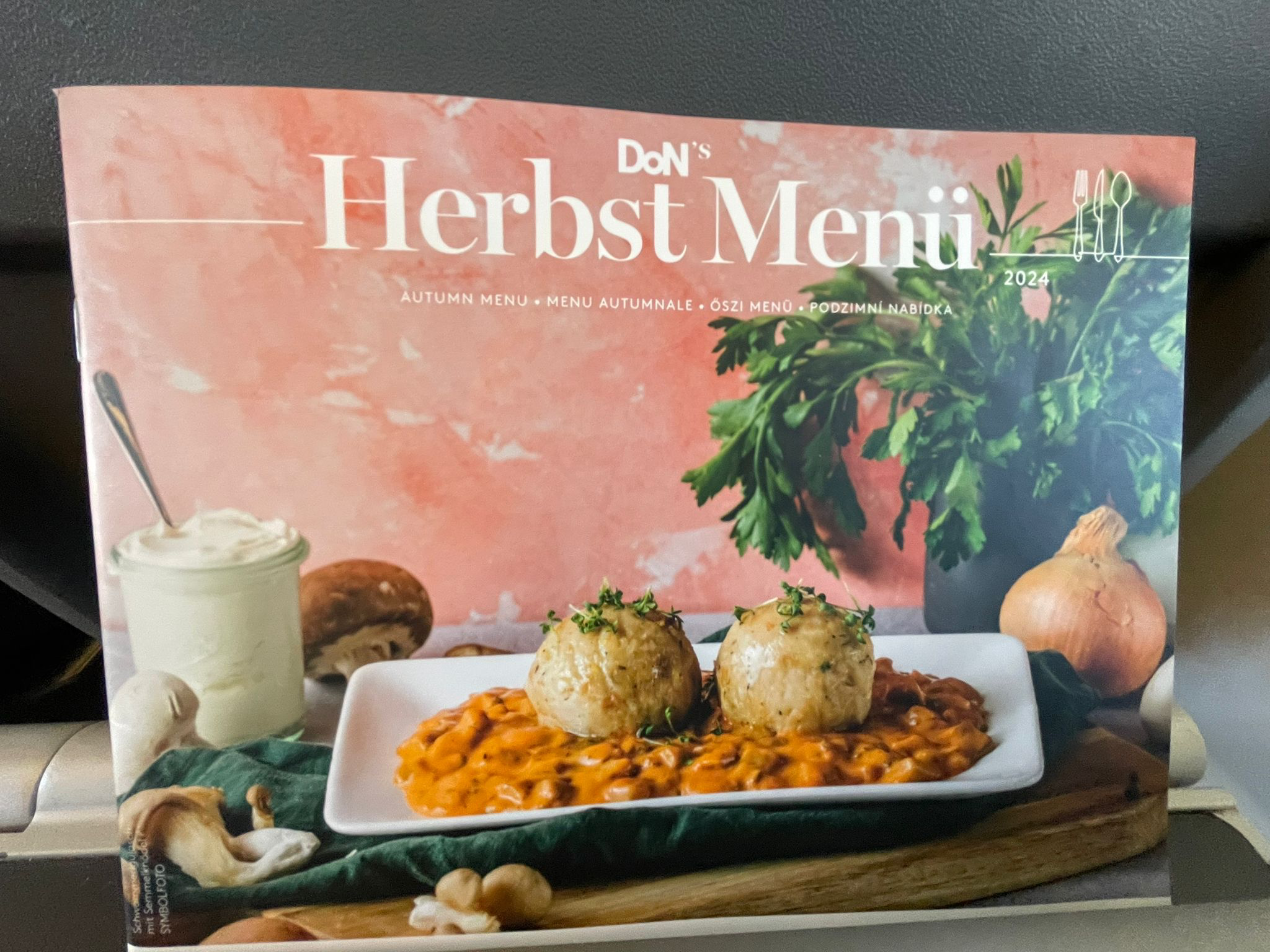 Beautifully produced menu… examples of pages. It’s just as well because we seem to have accumulated a considerable delay.