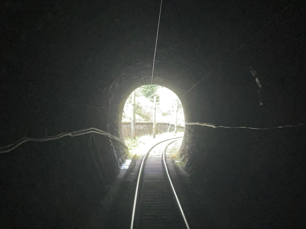 At a steadily constant 60kms per hour the train loops it way up the slope we had recently travelled down