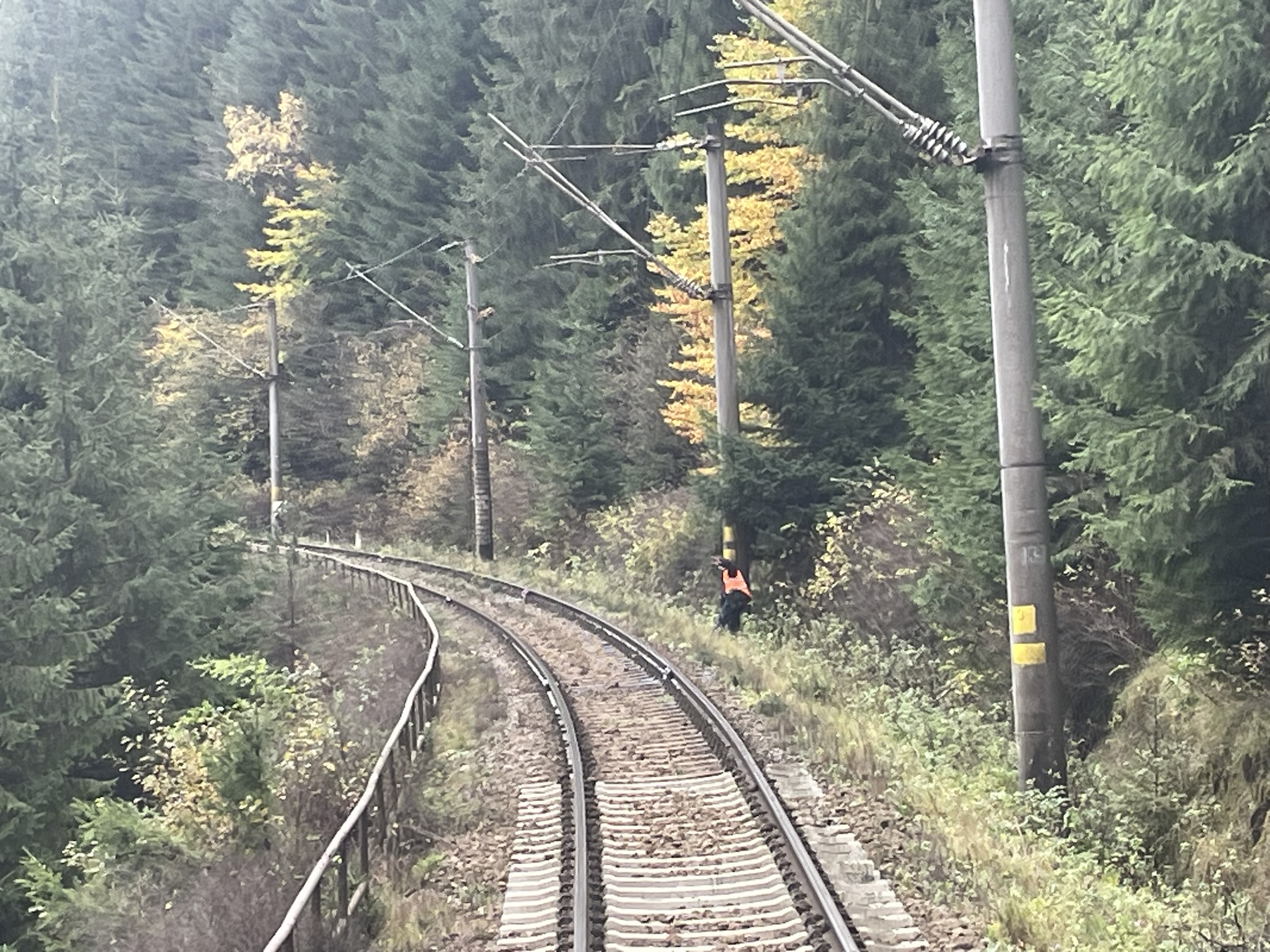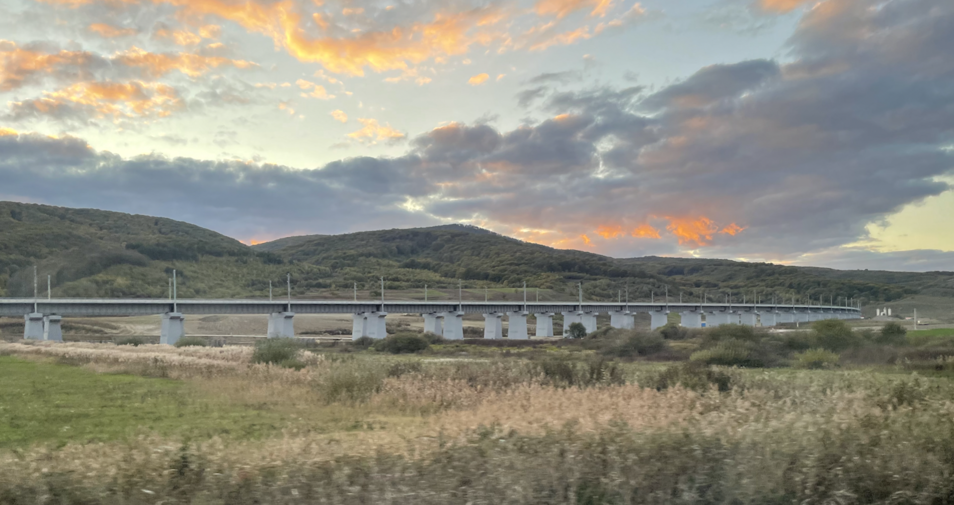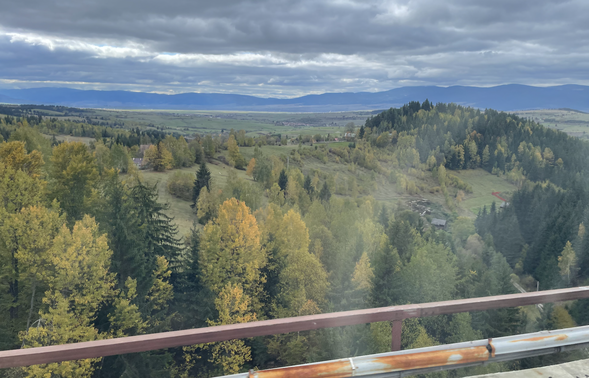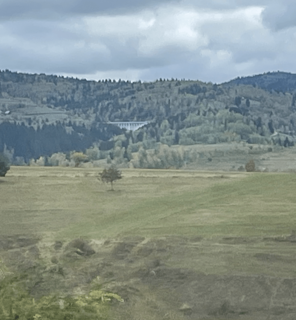 During the descent the bridge remains visible… a receding view as we descend to the main line at Siculeni..