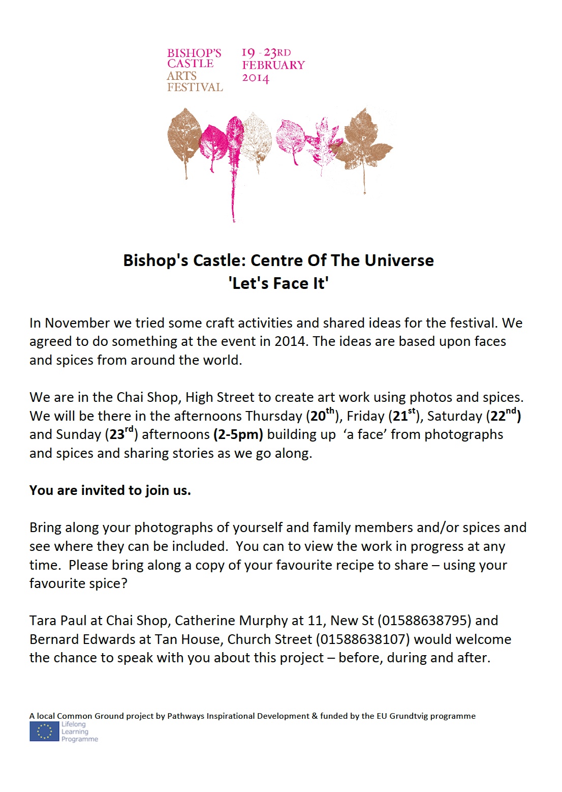 Following the Crafting Common Ground Workshop the Pathways team created an activity for the 2014 Bishop’s Castle Arts Festival.