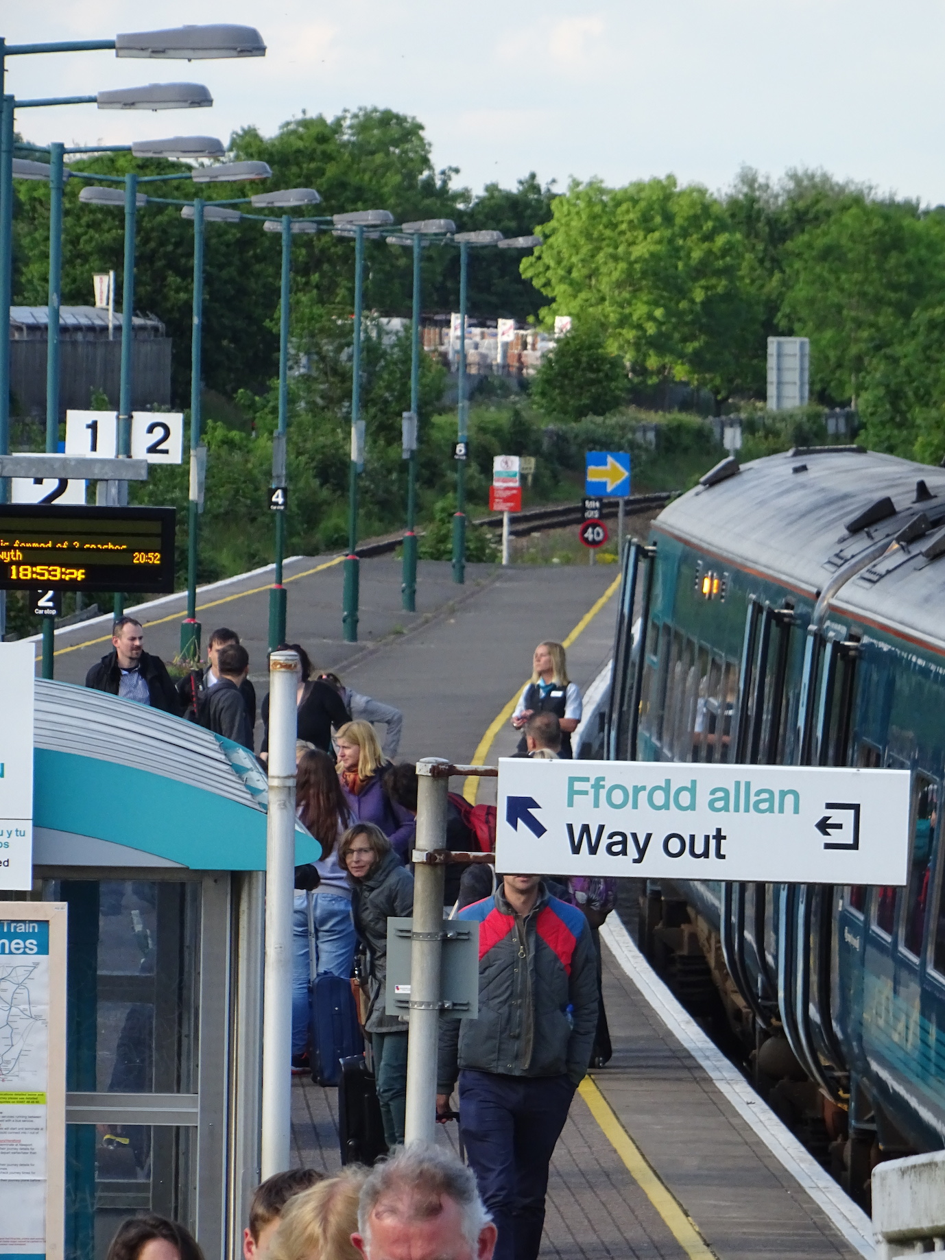 Welshpool station & the first bi-lingual signs (we suspect that the arrow by ‘Ffordd Allan’ covers the face of Jaap!)