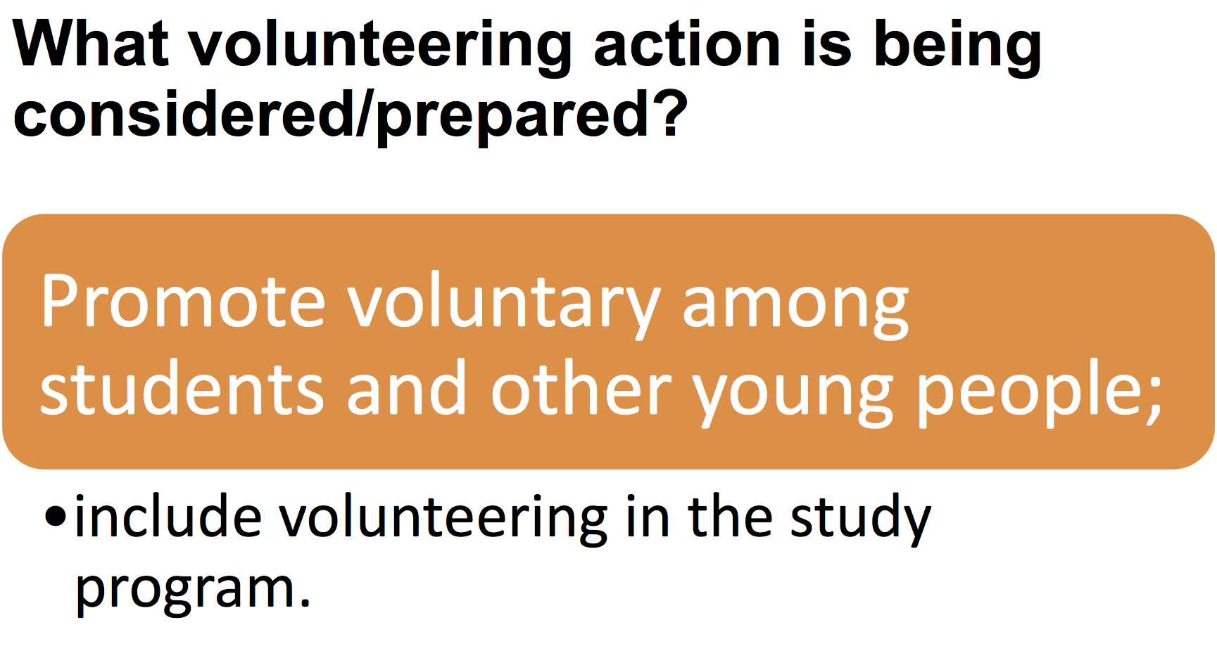 - What volunteering action is being considered/prepared?