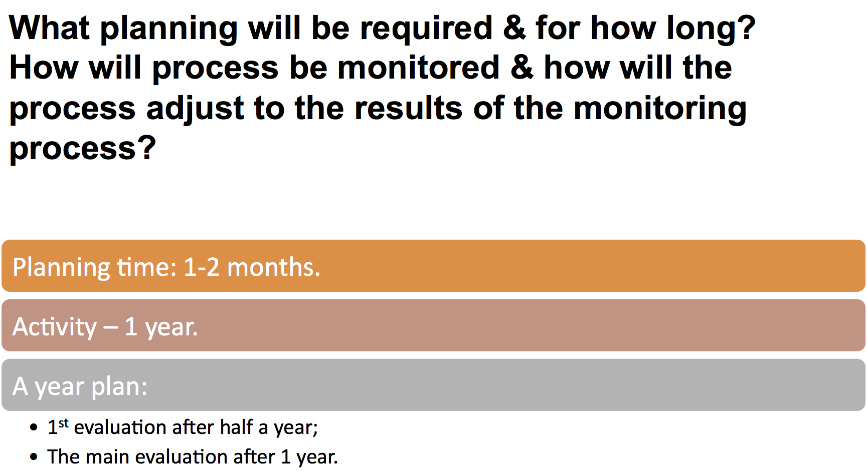 4. What planning will be required & for how long?