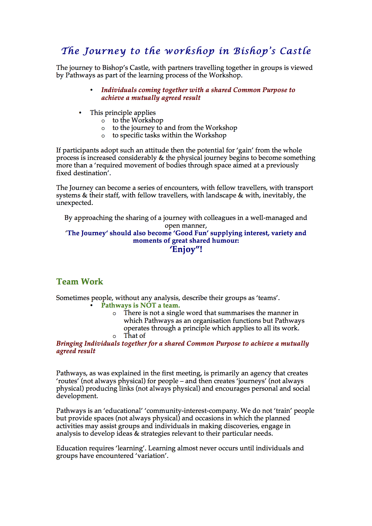 Pathways desires to provide as appropriate & effective Workshop as is possible.