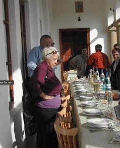 In a Romanian monastery, a Polish visitor from Zabrze, A Brit from Wales & local Romanian host contemplate the forthcoming meal