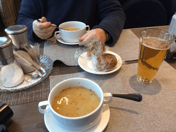 Everyone who tried to order seemed to be/was eating sausage (Jacqui managed sprats…. Maybe they are less popular than chicken Kiev)