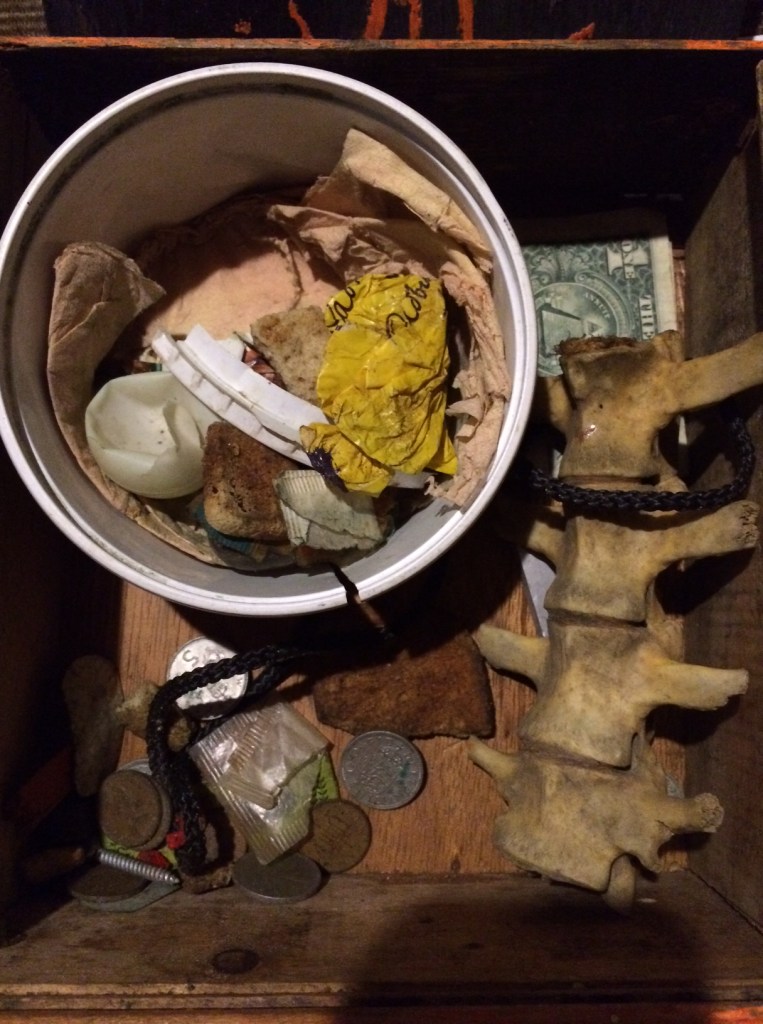 At the end of the pilgrimage the organisers were presented, by students, with a collection items they would, forever, associate with the walk – egg shells, blister pads, talcum powder & scraps of dried toast – all placed in a margarine tub.