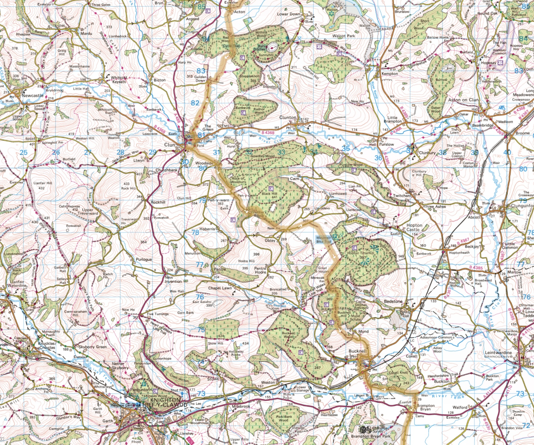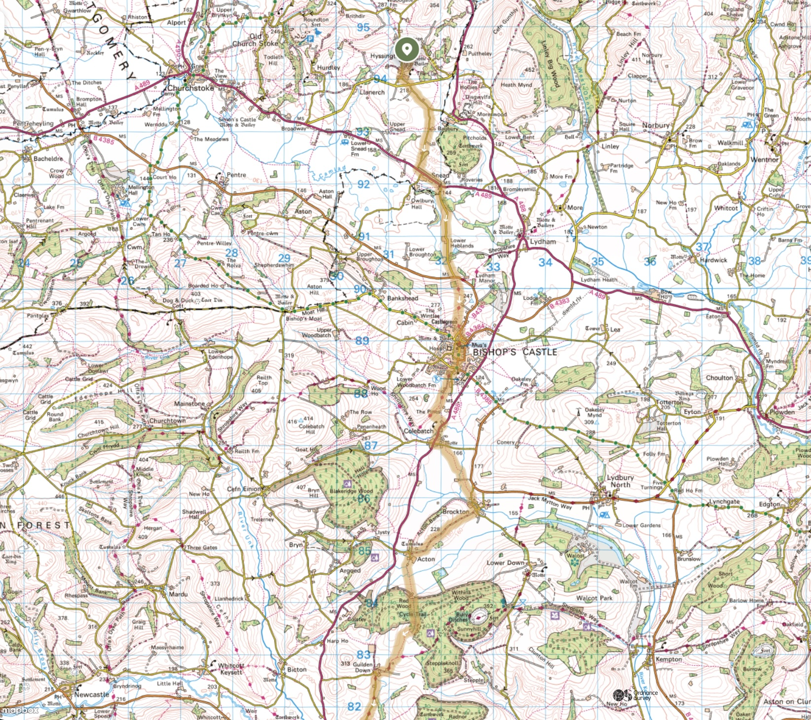 - an unofficial start point north of Bishop’s Castle to include